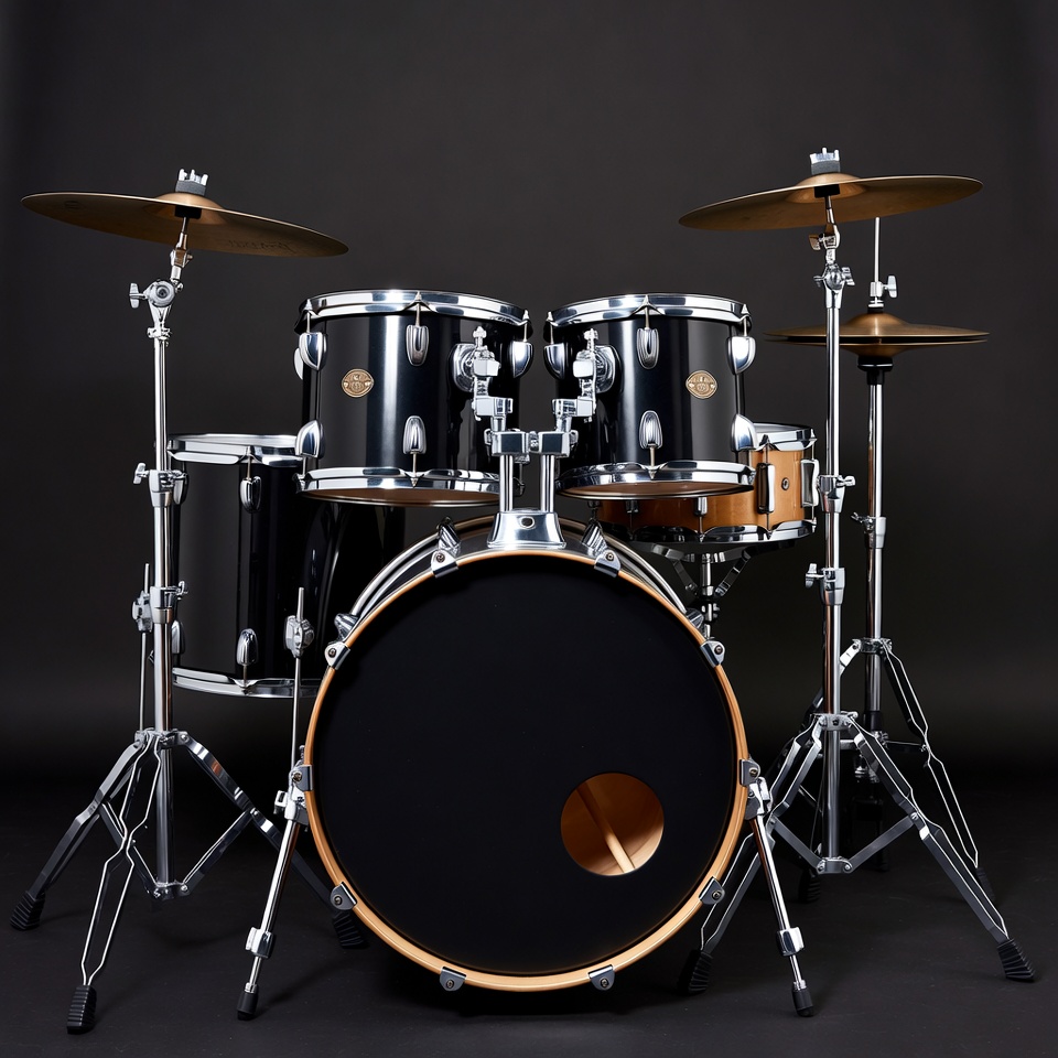Black Drum Set on Dark Background