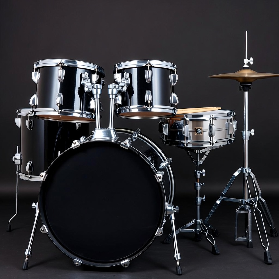 bass drum, black drums, chrome hardware, cymbals, drum kit, drum stand, drummer equipment, drums, hi-hat, isolated background, music instrument, musical instrument, percussion, rock drums, snare drum, studio drums, tom drums, drum set