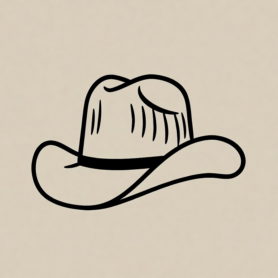 black outline, clipart, creased crown, graphic, hat, illustration, isolated background, line art, ranch hat, simple drawing, stencil, vector art, western hat, wide brim, cowboy hat