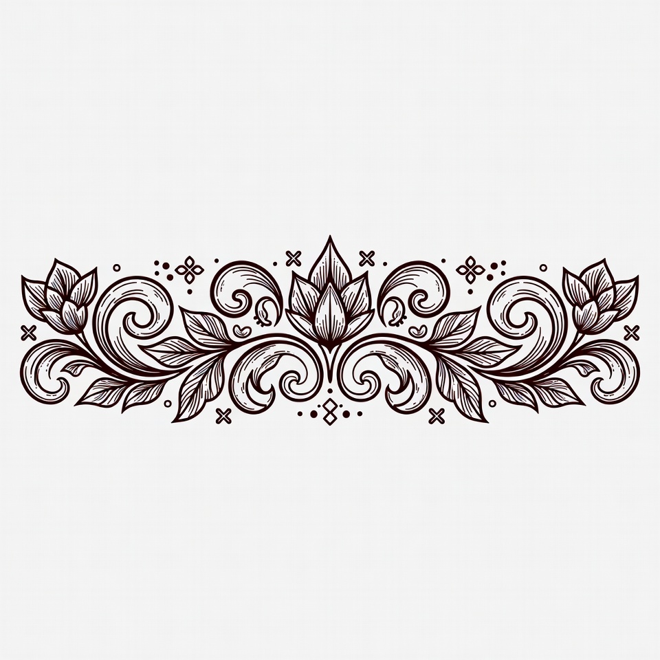 artistic border, black line art, botanical border, clipart, decorative border, decorative element, divider, dotted flourish, elegant border, floral design, floral motif, floral ornament, graphic design, illustration, isolated background, leaf swirl, line art, lotus flower, mandala border, ornate border, pattern border, separator, swirl leaves, symmetrical design, vector border, vintage border, floral border