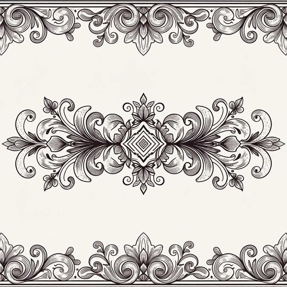 Victorian border, baroque pattern, black ink, clipart, decorative frame, diamond shape, elegant border, floral motif, flowers, graphic design, illustration, isolated background, line art, ornate border, scrolling leaves, symmetrical design, vector art, vintage ornament, white background, floral border