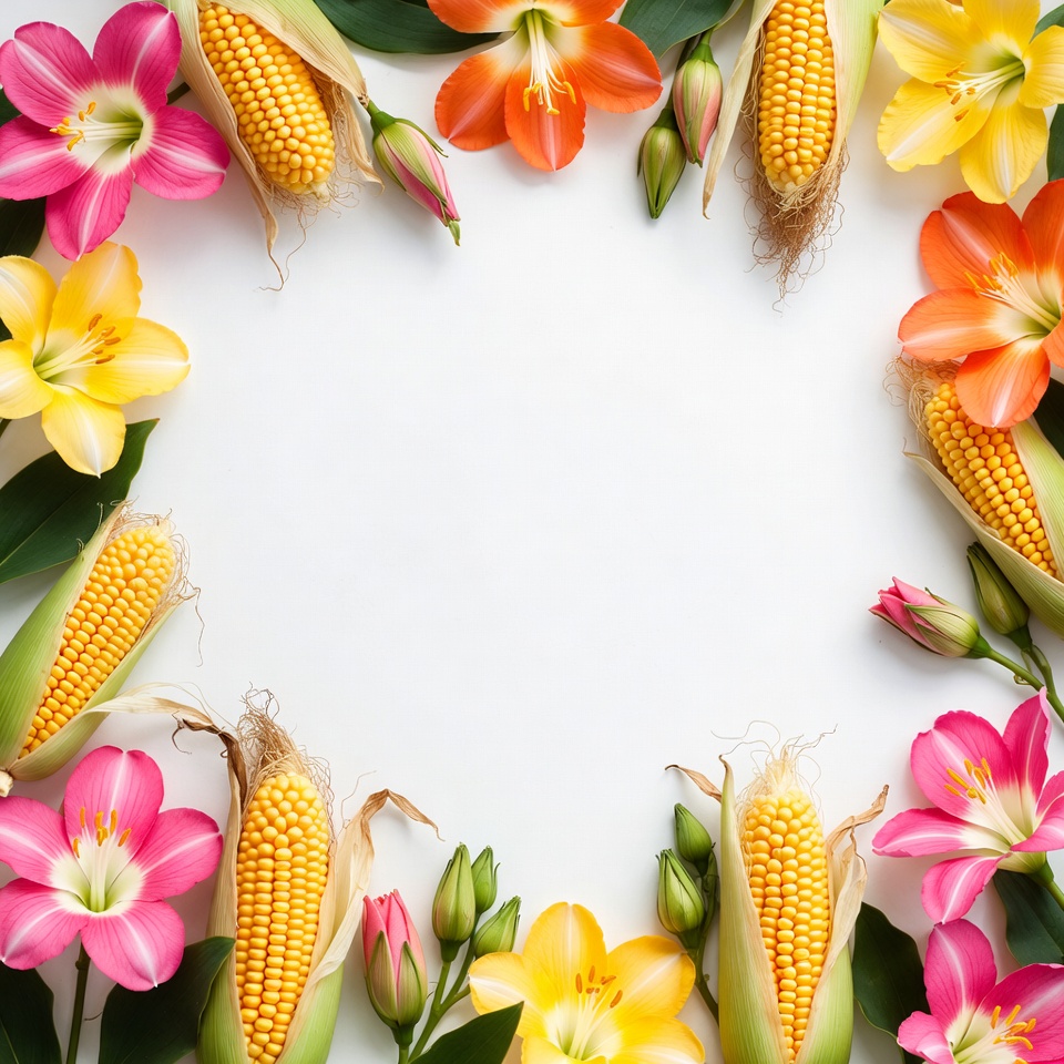 Corn and Flowers on White Background