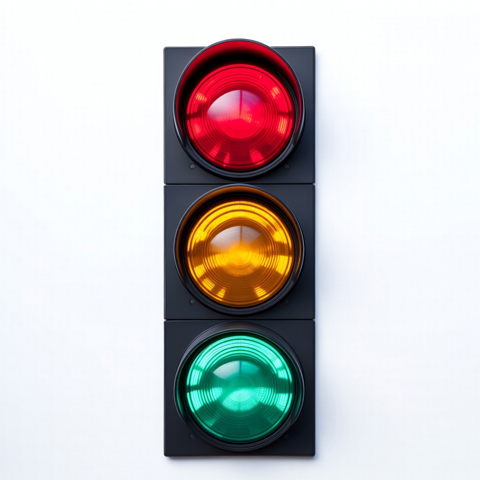 green light, illuminated, isolated, red light, road sign, signal, stoplight, street light, three lights, traffic signal, transportation, vertical, white background, yellow light, traffic light