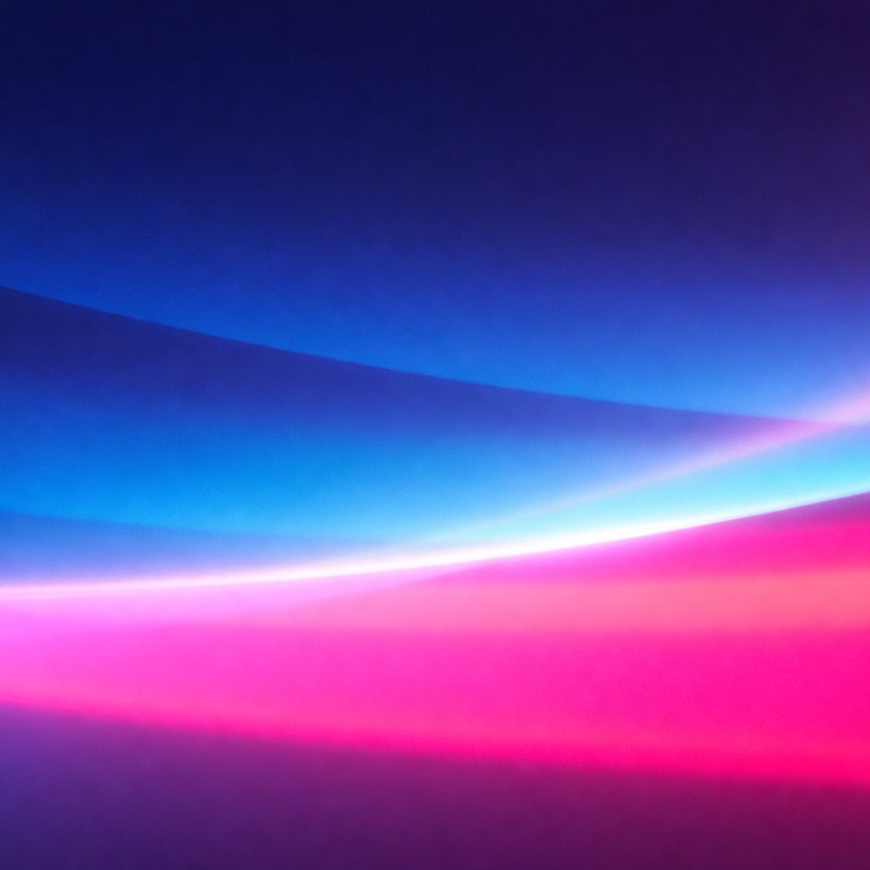 An abstract digital background features smooth gradients transitioning from deep navy blue at the top to bright pink at the bottom. Curved glowing streaks in blue, white, and pink add dynamic light effects across the dark backdrop. The design is isolated with no objects or figures.