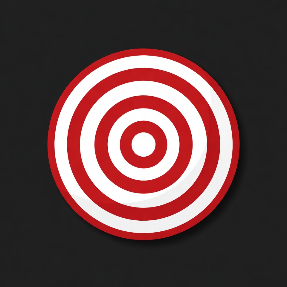 A circular target icon features alternating red and white concentric rings on a black background. The center is a small white circle surrounded by precise white rings and bold red bands. It has a clean, flat clipart design with a slight shine effect.