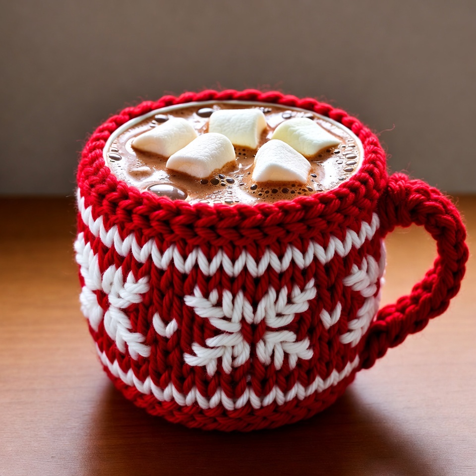 Red Knitted Mug with Hot Chocolate Marshmallows