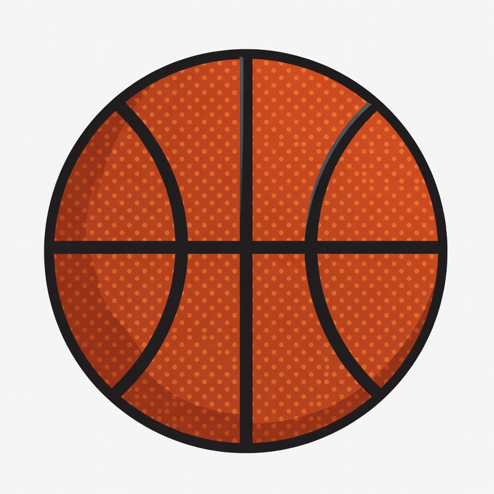 A detailed orange basketball illustration with black lines forming the classic seams. The textured surface features small dots for realism. It is centered on a white isolated background.