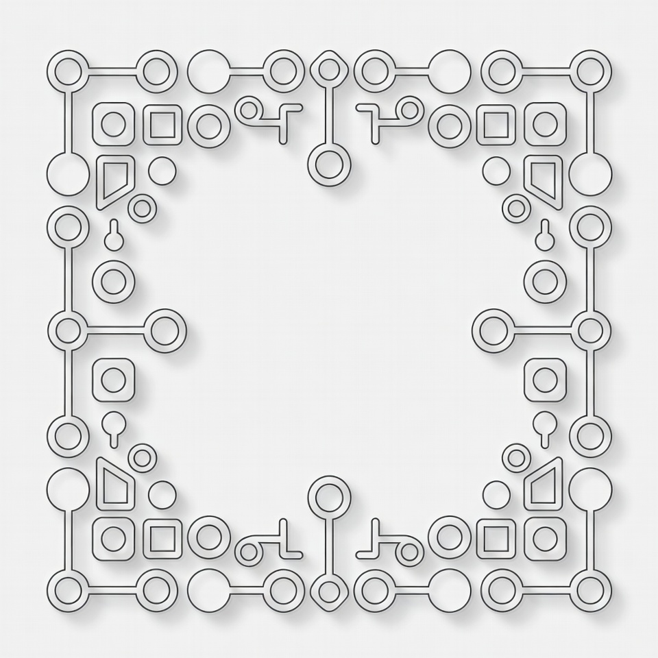 abstract design, abstract pattern, circles, clipart, decorative border, frame, geometric shapes, illustration, isolated background, line drawing, overlapping shapes, pattern, shapes, square frame, squares, symmetrical design, triangles, vector art, white lines, geometric border