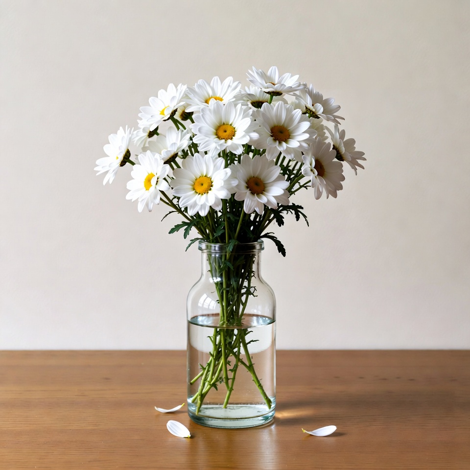 White Daisies in Glass Vase