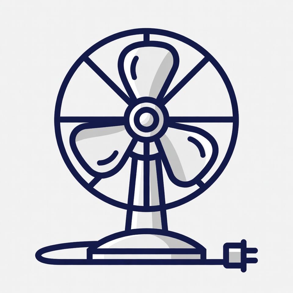 blades, blue lines, clipart, cooling fan, electric fan, electric plug, fan blades, household fan, illustration, isolated background, line art, power cord, simple illustration, standing fan, table fan, vector fan, white background, fan