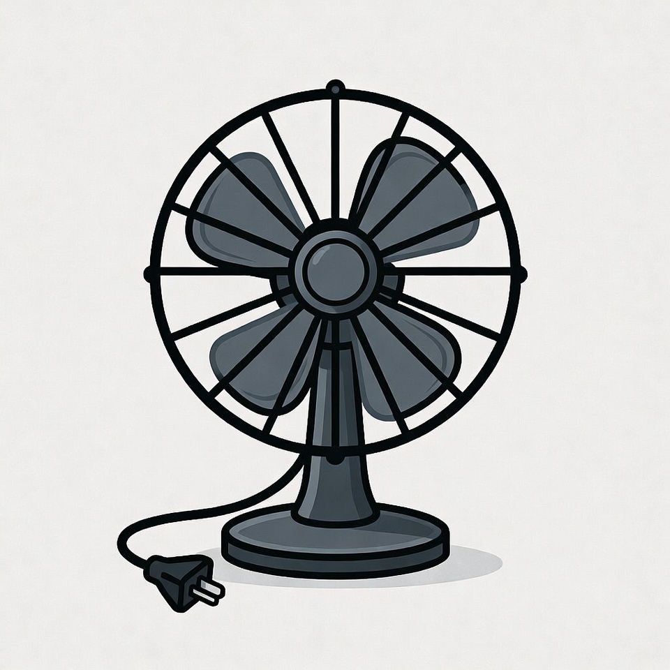 appliance, black fan, blades, clipart, cooling fan, electric plug, fan, home appliance, illustration, isolated background, pedestal fan, power cord, standing fan, vector art, electric fan