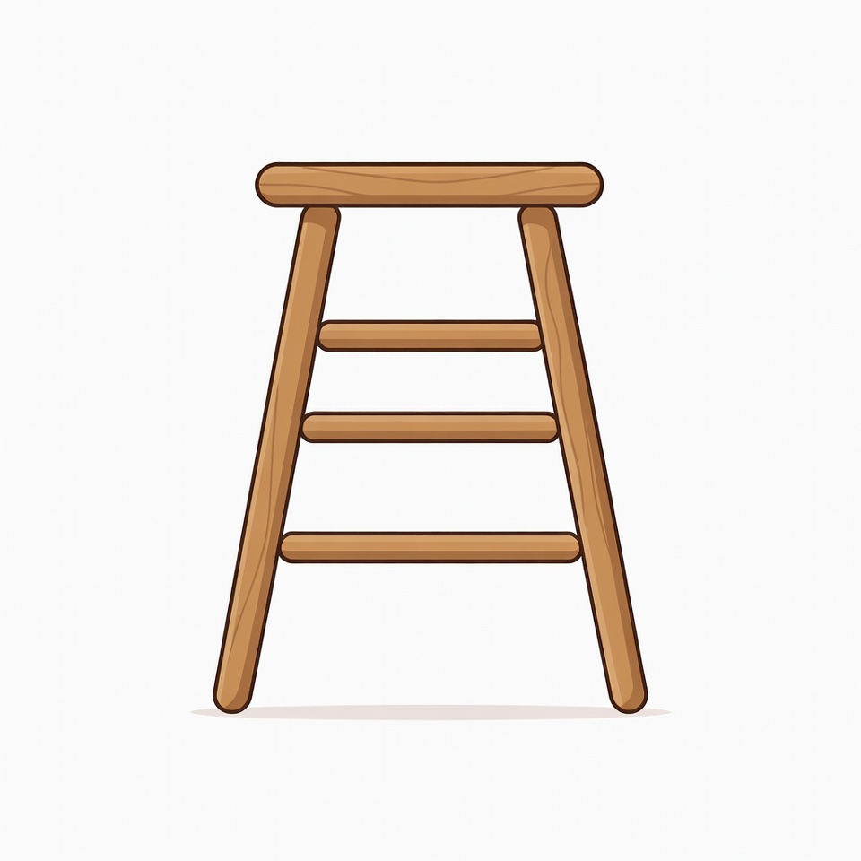 clipart, flat design, furniture, illustration, isolated background, legs, seat, simple, stool, supports, wood, wooden stool
