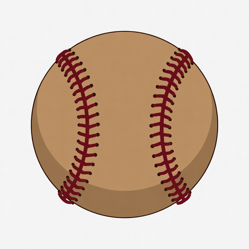 A clipart illustration of a tan baseball with red stitches is centered on a white background. The seams form the classic curved pattern across the spherical leather surface. It appears isolated and ready for use in designs.