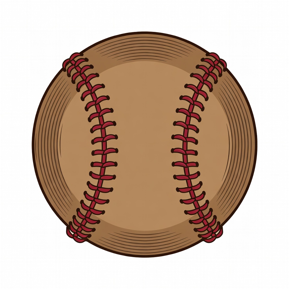 ball, clipart, equipment, game, graphic, illustration, isolated background, red stitches, round, sport ball, sports, stitched baseball, tan leather, vector, baseball
