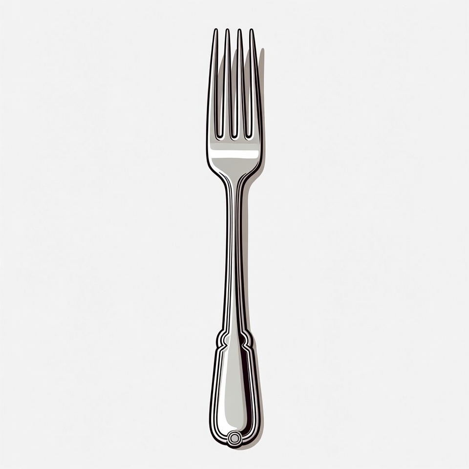 clipart, cutlery, dinner fork, eating utensil, illustration, isolated background, kitchen utensil, line art, metallic fork, shiny fork, silver fork, simple fork, tableware, vector, fork