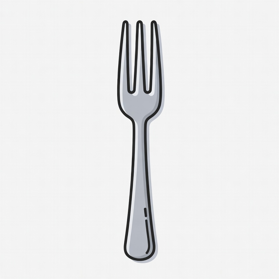clipart, cutlery, dinner fork, eating utensil, flat design, illustration, isolated background, kitchen utensil, line art, metallic, silver fork, simple icon, tableware, vector, fork