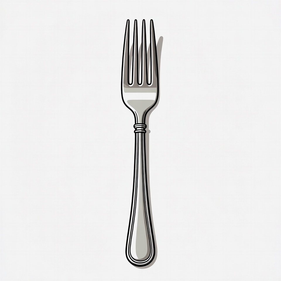 clipart, cutlery, dinner fork, eating utensil, illustration, isolated background, kitchen utensil, line art, metal fork, shiny fork, silver fork, tableware, vector, white background, fork