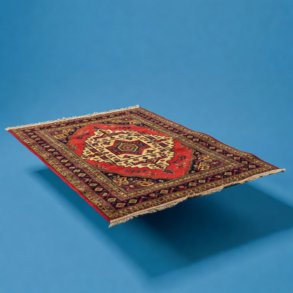 Red Oriental Rug on Blue Background