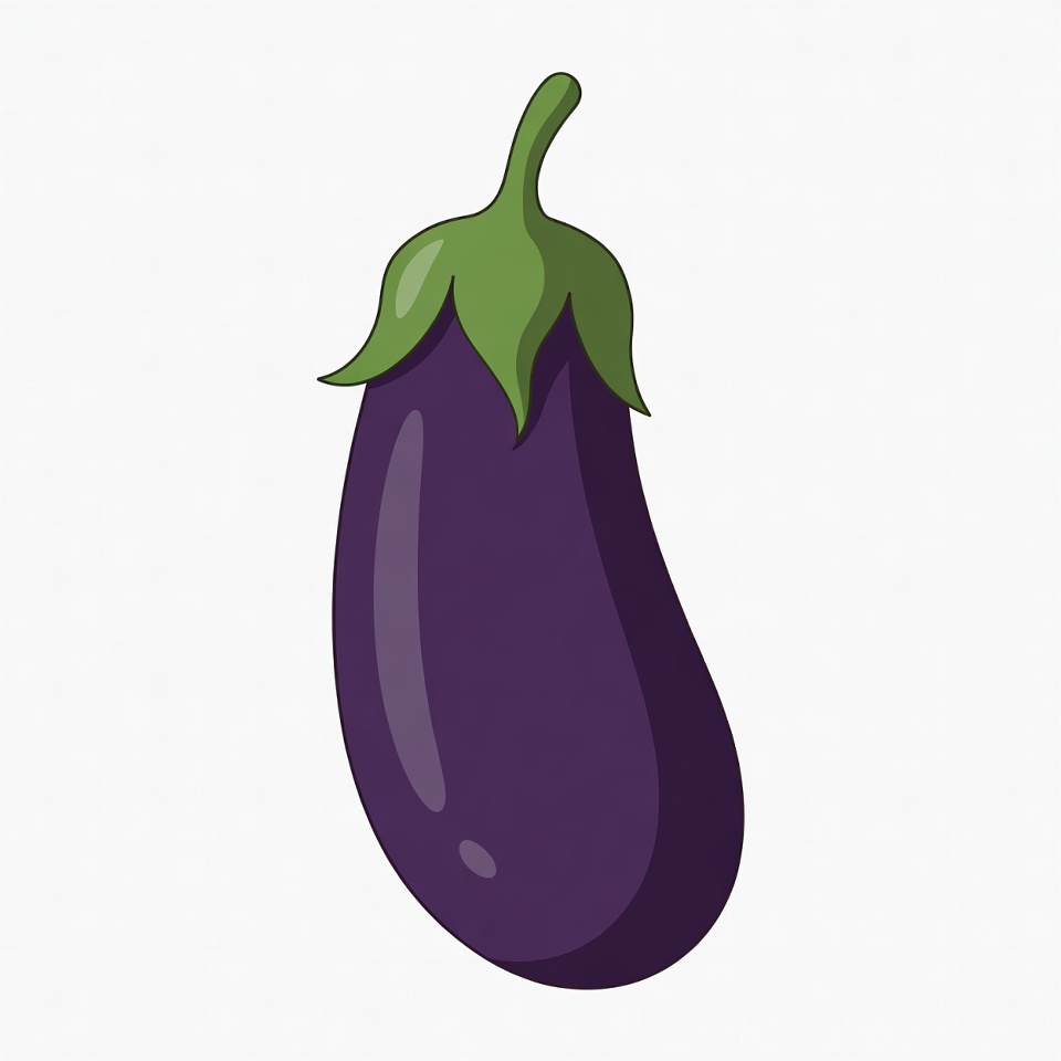aubergine, cartoon, clipart, drawing, food, glossy, green stem, illustration, isolated background, produce, purple vegetable, shiny, vector, vegetable, eggplant
