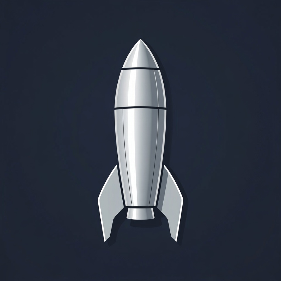 aerospace, clipart, dark background, fins, futuristic, graphic, icon, illustration, isolated background, launch, metallic, nose cone, sci-fi, silver rocket, simple, space, spaceship, upward, vector, rocket