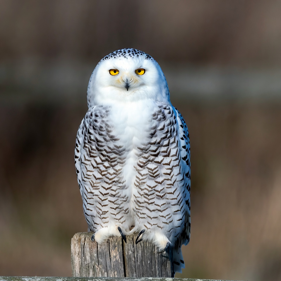 animal, bird, feathers, isolated background, nature, owl, perched, raptor, snow owl, talons, white owl, wildlife, wooden post, yellow eyes, snowy owl