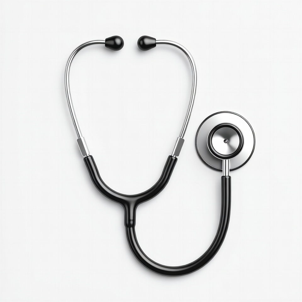 black tubing, chest piece, clinic, doctor, earpieces, equipment, health, healthcare, hospital, isolated, medical, medical tool, silver stethoscope, white background, stethoscope