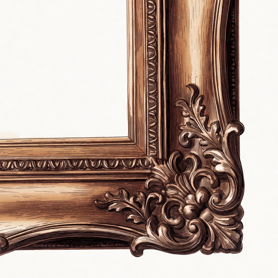 art frame, baroque frame, blank frame, carved wood, decorative frame, elegant frame, empty frame, floral design, frame border, gold frame, illustration, isolated background, leaf carving, ornate frame, photo frame, rococo style, vintage frame, wall frame, wooden frame, picture frame