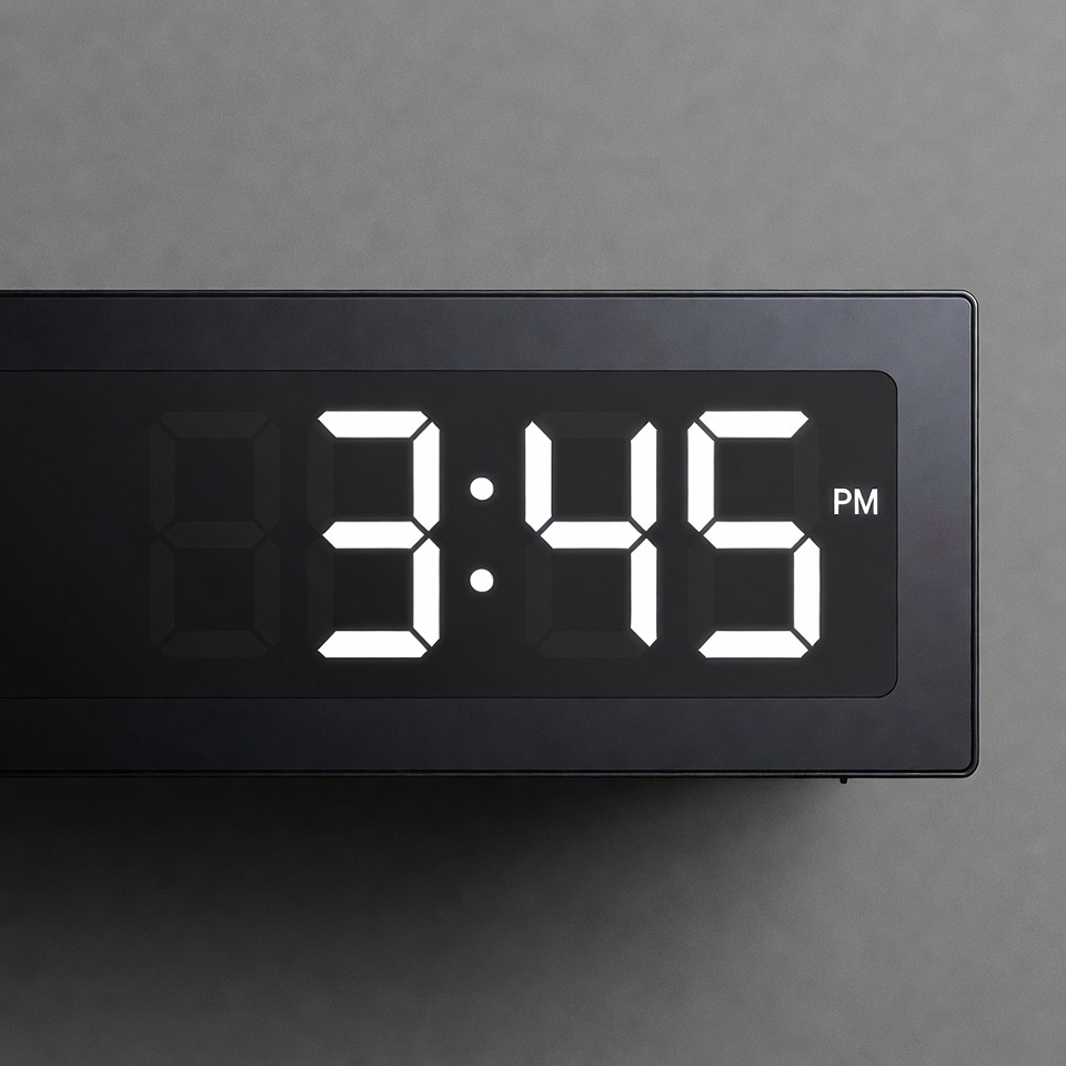 3:45, LED display, PM, alarm clock, black clock, clock, desk clock, isolated background, modern clock, rectangular clock, time, white digits, digital clock
