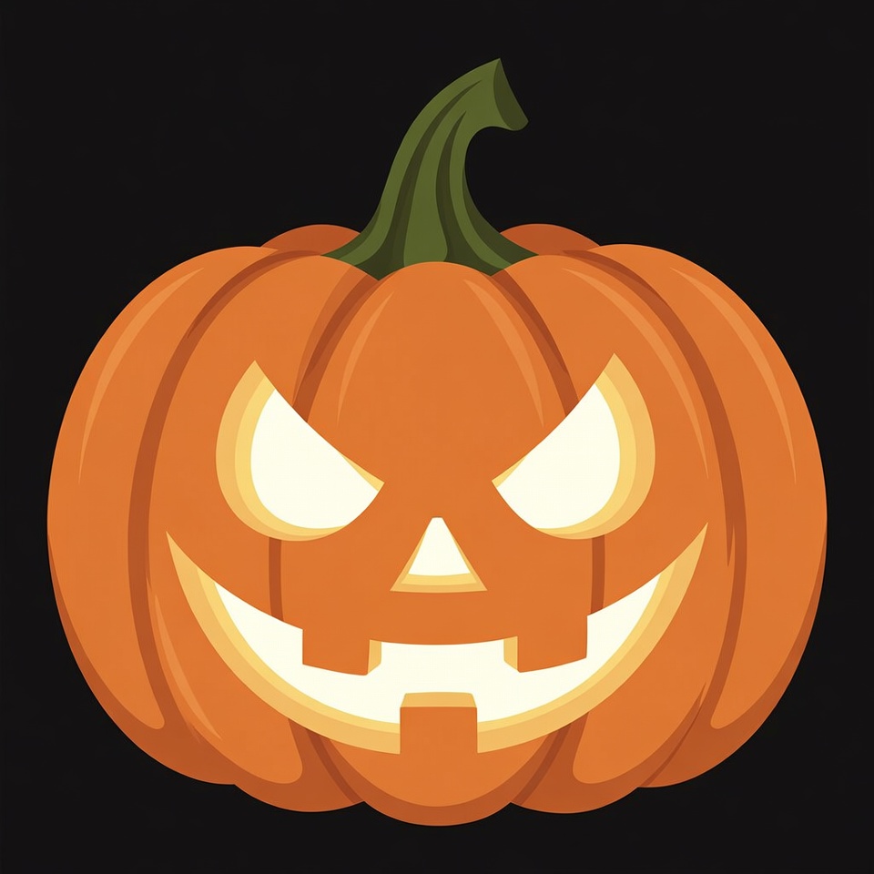 Halloween, autumn, carved pumpkin, clipart, festive, glowing eyes, green stem, illustration, isolated background, jagged teeth, orange pumpkin, pumpkin, scary face, spooky, jack-o-lantern