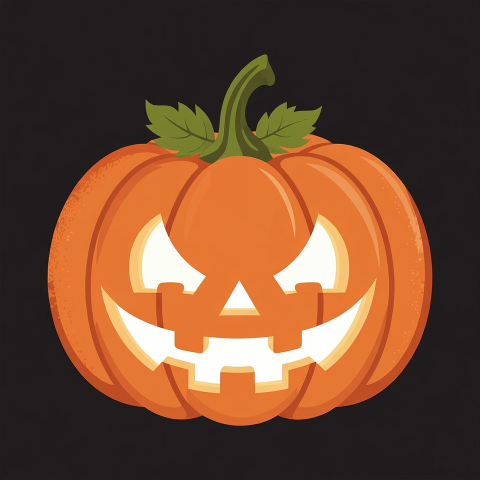 Halloween, black background, cartoon, carved pumpkin, clipart, glowing eyes, green stem, illustration, isolated, orange pumpkin, pumpkin, smiling mouth, spooky face, vector, jack-o-lantern