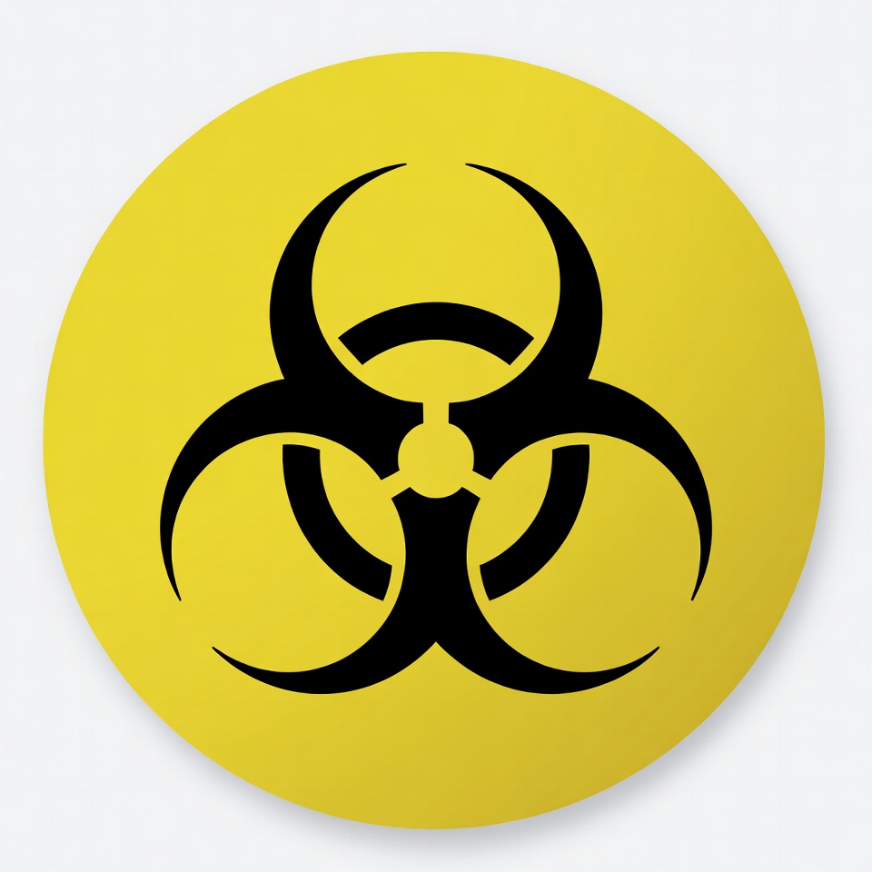 biohazard sign, biological hazard, black symbol, clipart, danger symbol, hazard symbol, isolated background, round sticker, safety sign, vector graphic, warning sign, yellow sticker, biohazard symbol