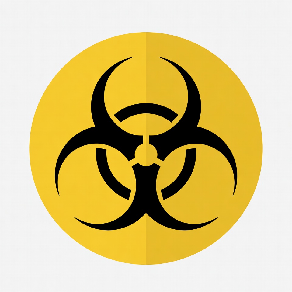 biohazard, biological hazard, black symbol, clipart, danger icon, flat design, hazard, illustration, isolated background, safety icon, toxic symbol, vector graphic, warning sign, yellow circle, biohazard symbol