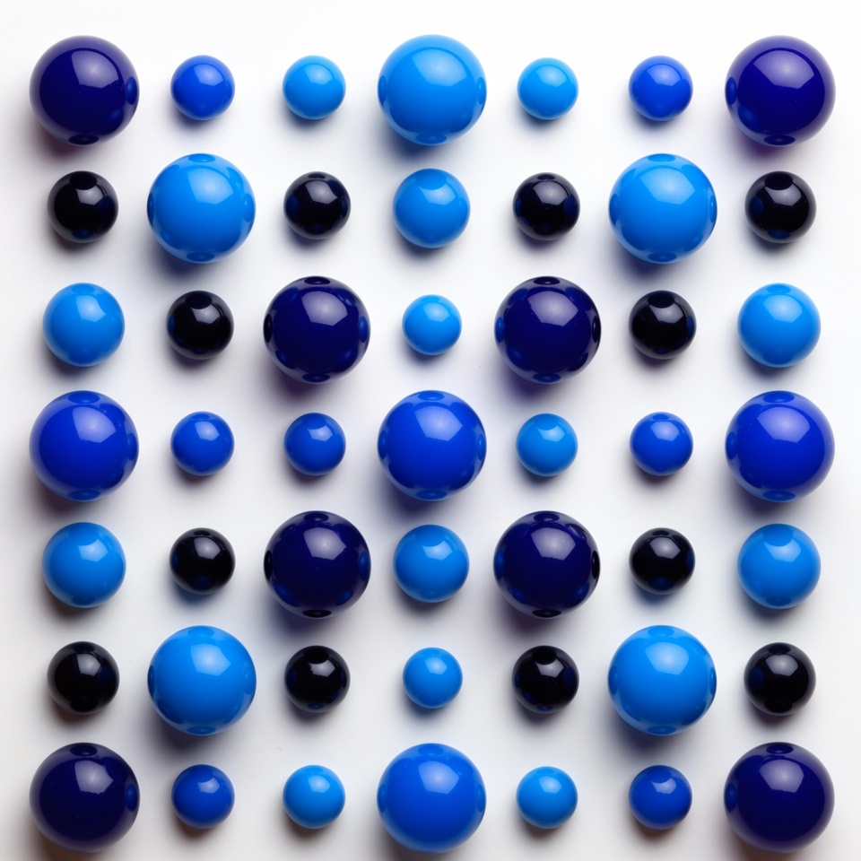 Blue and Black Marbles on White