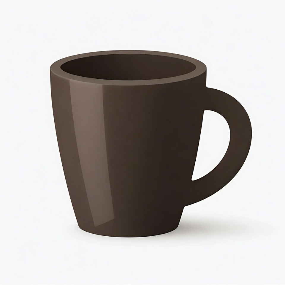 3D render, ceramic mug, clipart, coffee mug, glossy, handle, illustration, isolated background, mug, simple, vector, white background, brown mug