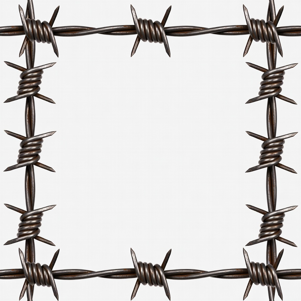 border, clipart, coiled wire, danger, fence, illustration, isolated background, metal wire, prison fence, rusty wire, security, sharp barbs, square frame, wire frame, barbed wire