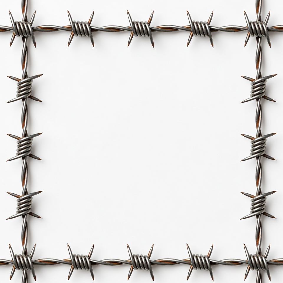 border, clipart, empty background, fence, illustration, isolated background, metal wire, prison fence, razor wire, rectangular frame, rusted wire, security, sharp barbs, white space, wire frame, barbed wire