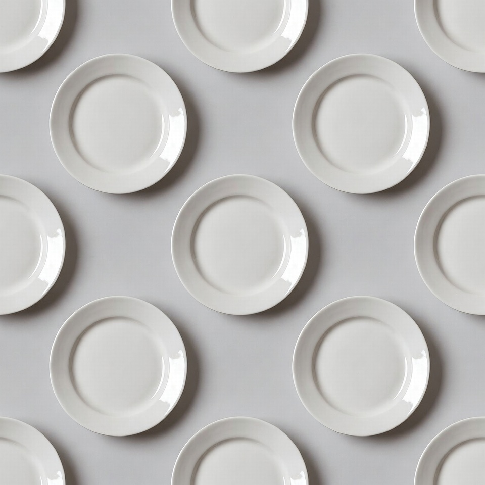 ceramic plates, dinner plates, dishes, dishware, gray background, kitchenware, plate pattern, plates, porcelain plates, repeating pattern, round plates, seamless pattern, tableware, tile pattern, white dish, white plates