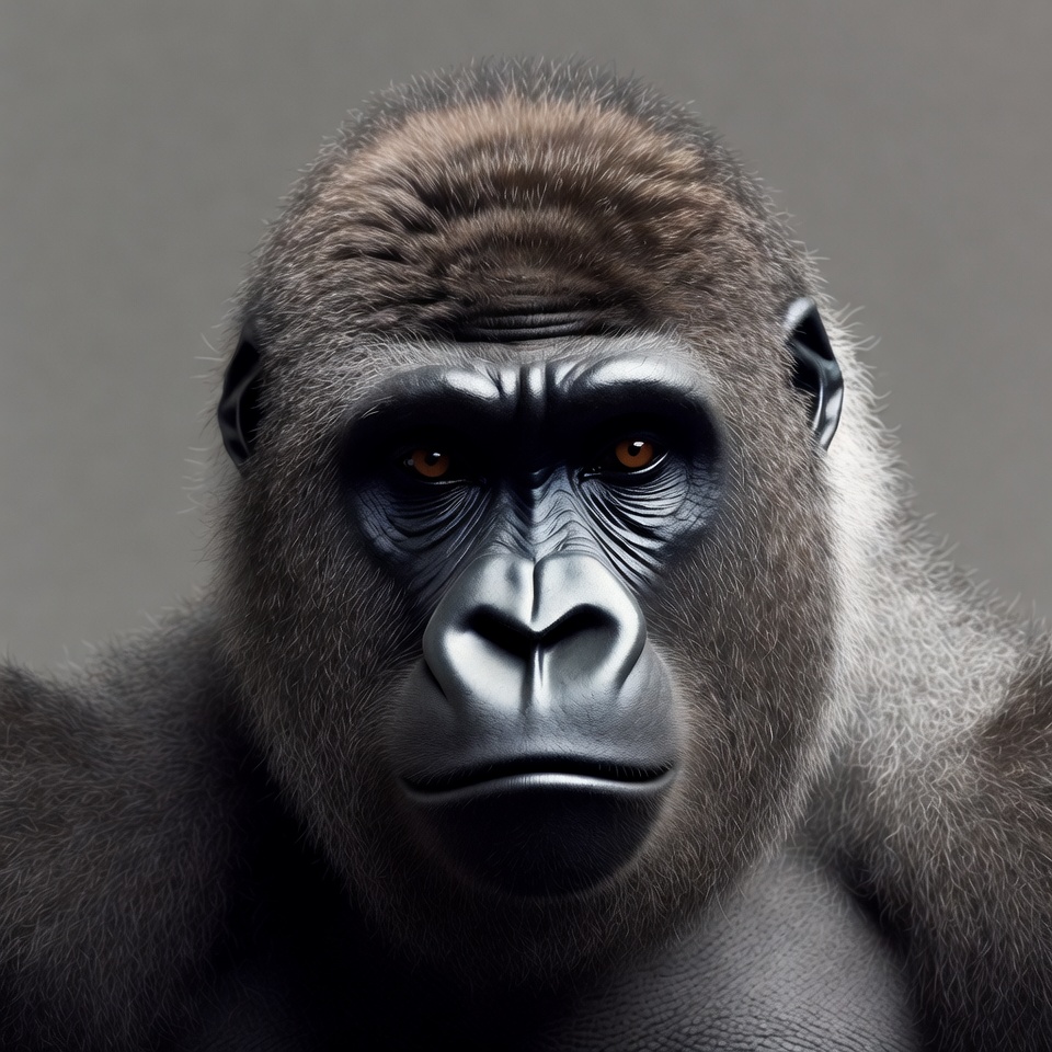 3D render, animal, ape, black skin, close-up, detailed, face, fur, headshot, intense gaze, isolated background, mammal, portrait, primate, realistic, red eyes, silverback, wildlife, gorilla