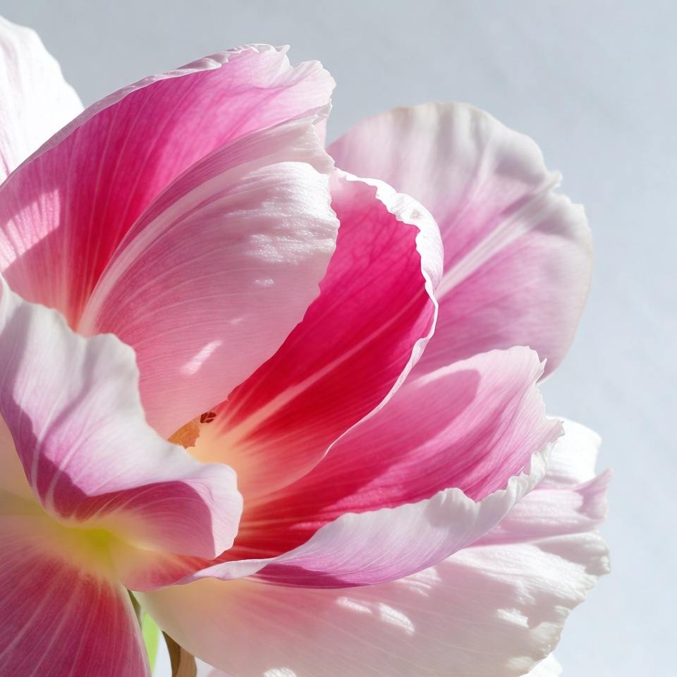 floral macro, flower closeup, flower photography, garden flower, isolated background, petal texture, pink petals, spring flower, tulip bloom, tulip closeup, tulip flower, vibrant pink, white background, white stripes, pink tulip