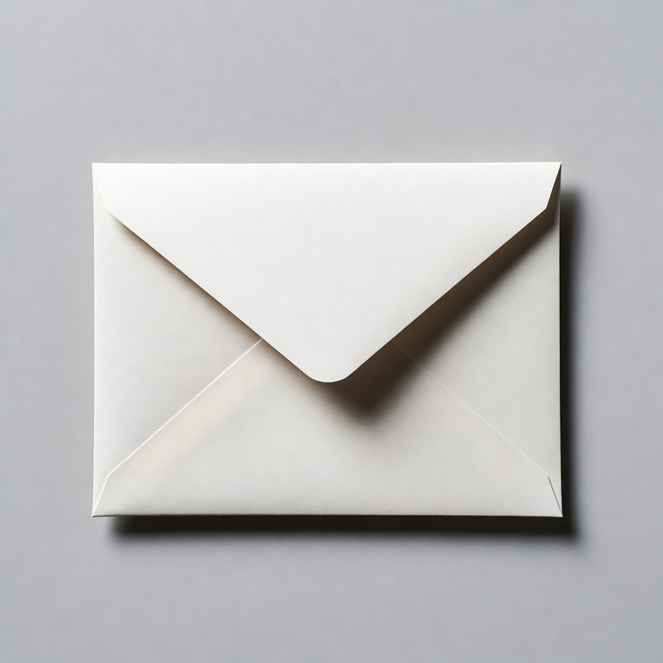 blank envelope, correspondence, gray background, invitation, isolated, letter, mail, paper, postage, sealed envelope, stationery, top view, white envelope, envelope