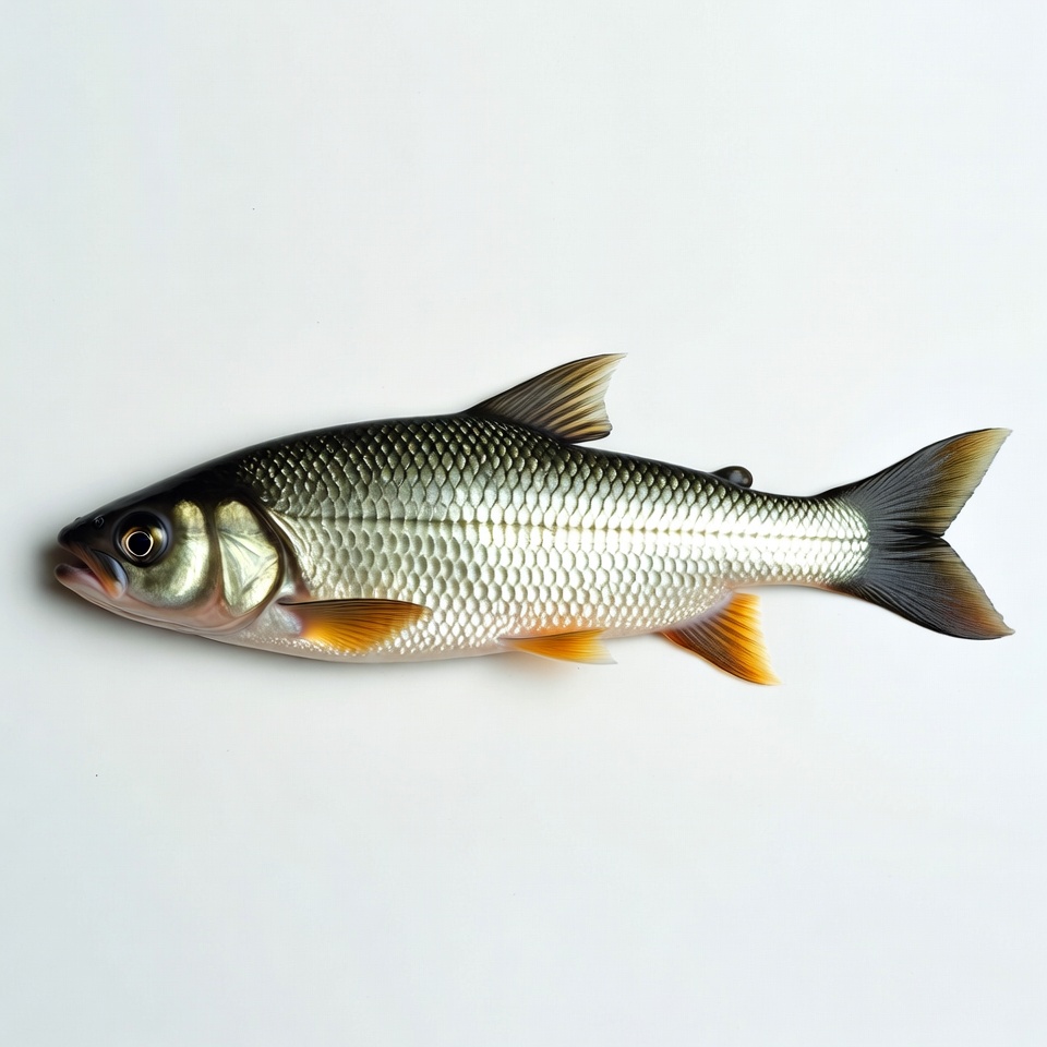 aquarium fish, black back, caught fish, fish, freshwater fish, isolated fish, orange fins, river fish, scales, seafood, silver fish, white background, dace fish