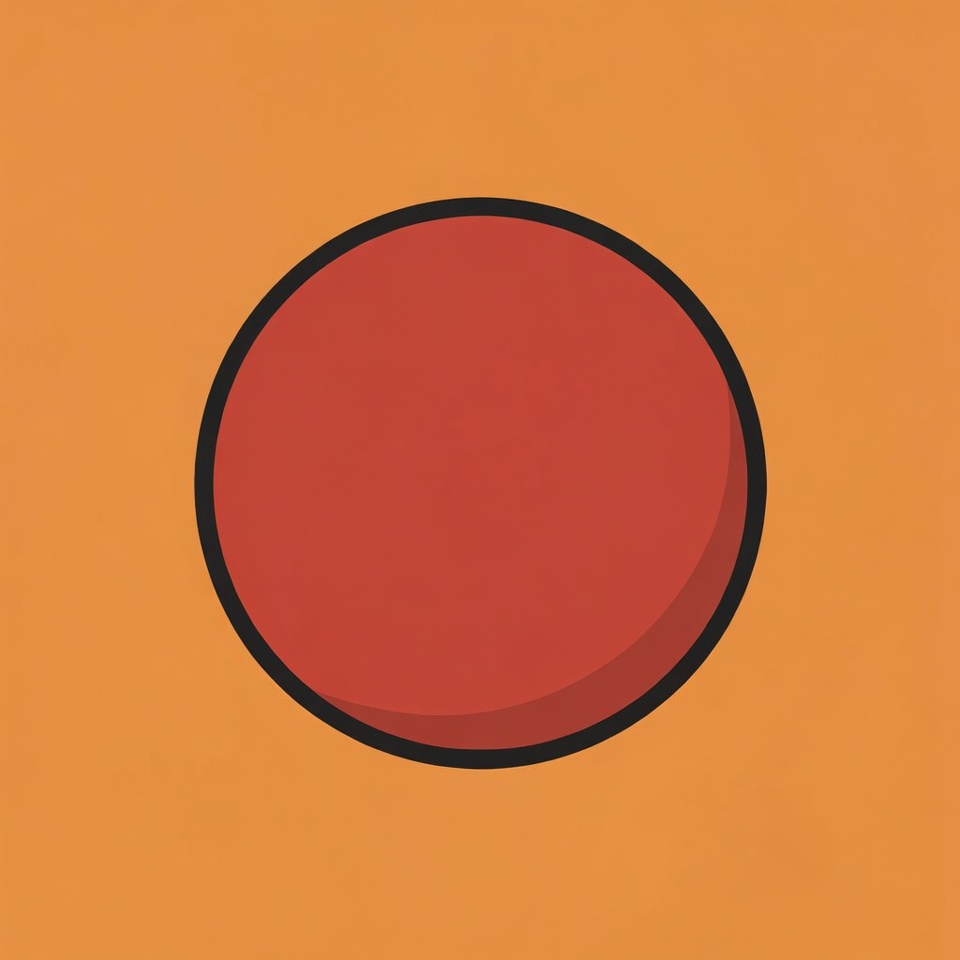 black outline, circle, clipart, flat design, graphic, illustration, isolated background, orange background, red, shape, simple design, vector, red circle