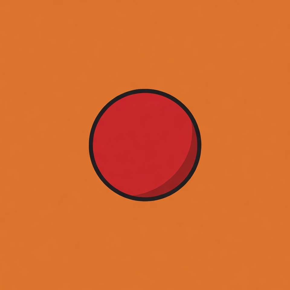 black outline, bold, circle, clipart, geometric, graphic, illustration, isolated background, orange background, red, round, simple shape, vector, vibrant, red circle