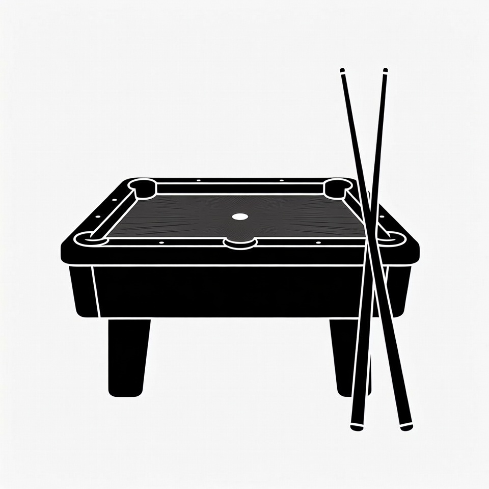 Pool Table with Crossed Cue Sticks