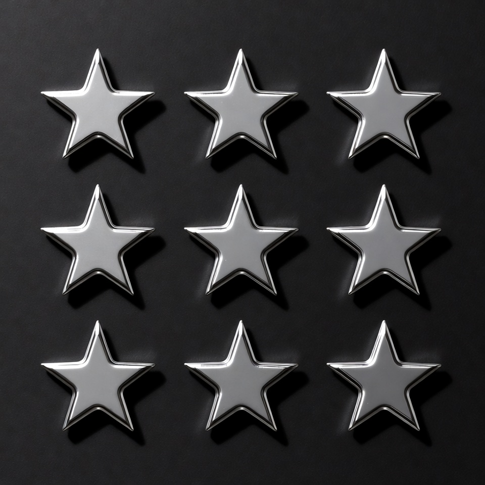 3x3 grid, black background, five-pointed stars, glossy stars, isolated background, metallic stars, nine stars, rating stars, reflective stars, shiny stars, star icons, star pattern, stars, silver stars