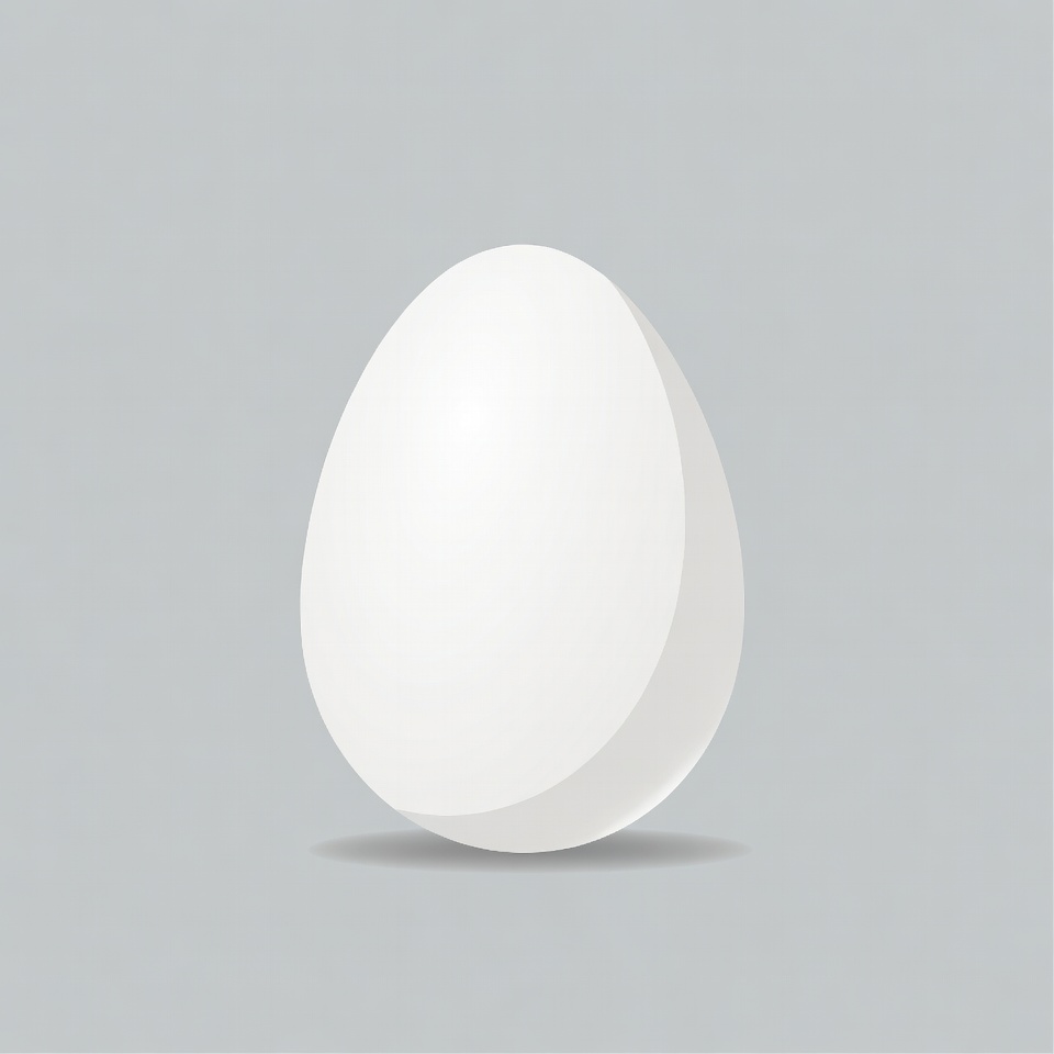 A simple white egg with a smooth, glossy surface stands centered on a solid gray background. It features subtle shading and a soft drop shadow for a three-dimensional effect. The illustration is clean and minimalist.