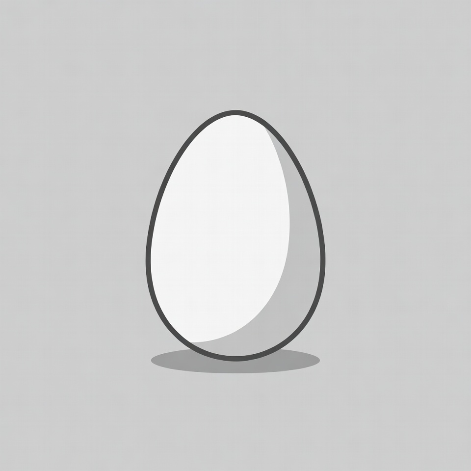 A simple white egg with black outline is centered on a light gray background. It features subtle shading and a small drop shadow beneath it. The illustration has a clean, minimalist style.