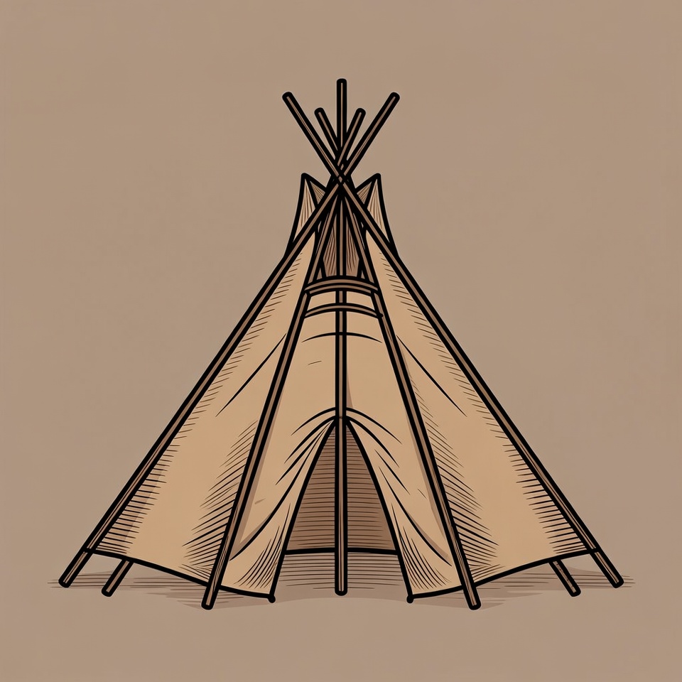 Native American, beige tent, camping, canvas tent, clipart, conical tent, illustration, isolated background, line art, outdoor shelter, tent, tribal tent, wigwam, wooden poles, teepee