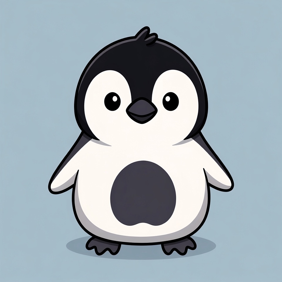 adorable, animal, big eyes, bird, black white, cartoon penguin, chubby, clipart, cute penguin, illustration, isolated background, kawaii, standing penguin, vector art, penguin