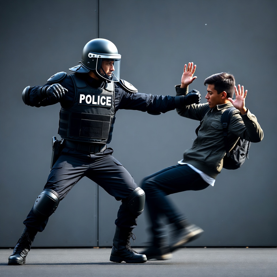 Police Officer Kicking Young Man